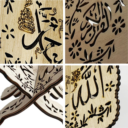 OurWarm Wooden Book Shelf Holder Holy Prayer Book Stand Wooden Plaque Islamic Eid Ramadan Mubarak Home Decoration