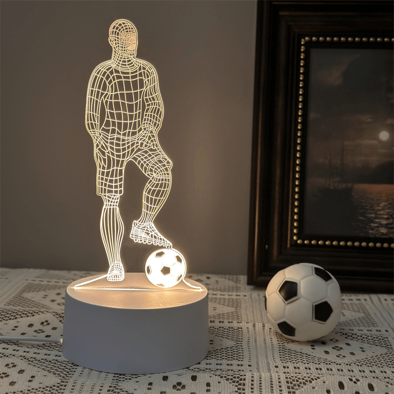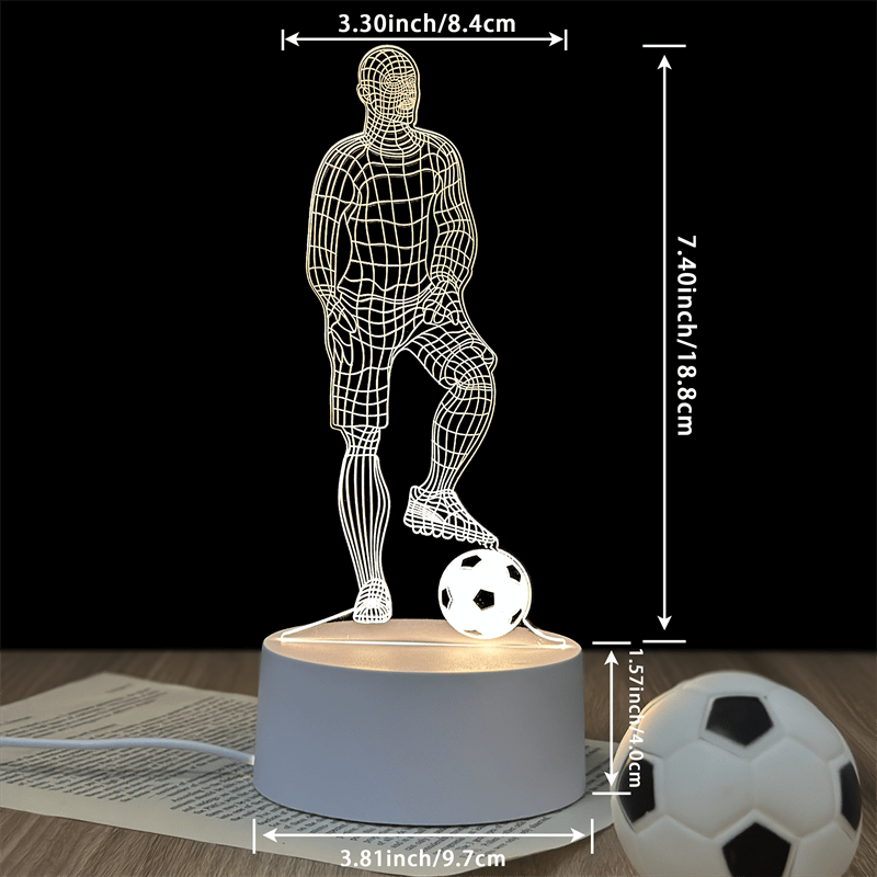 1pc Acrylic 3D Soccer Player LED Night Light with USB Power - Monochrome Kick Soccer Lamp for Bedroom Decor, Birthday, Valentine's, Christmas & Graduation Gift